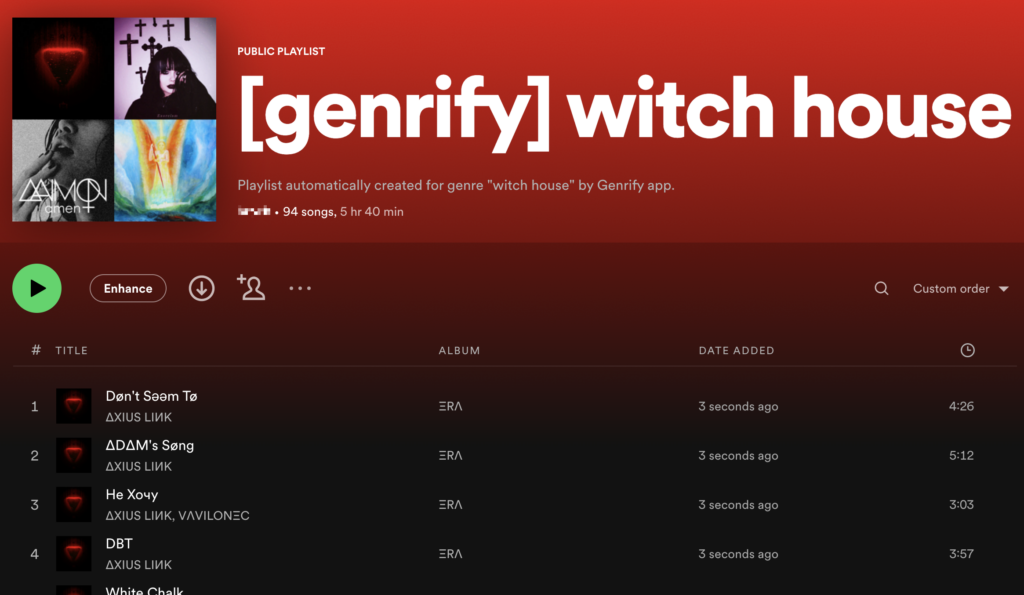Let’s say we type “1” then Enter to choose “witch house” as the genre: