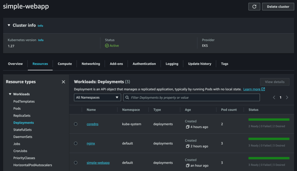 2023-08-22 15:07:23 [✔] all EKS cluster resources for "simple-webapp" have been created