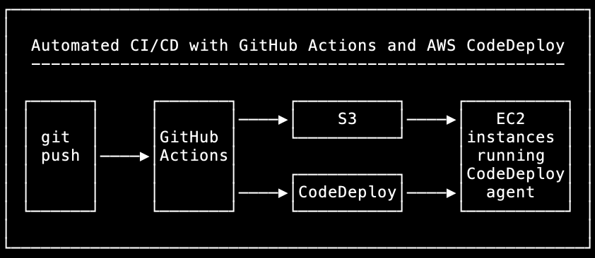 This simple diagram shows the desired CI/CD architecture with GitHub Actions and AWS CodeDeploy: