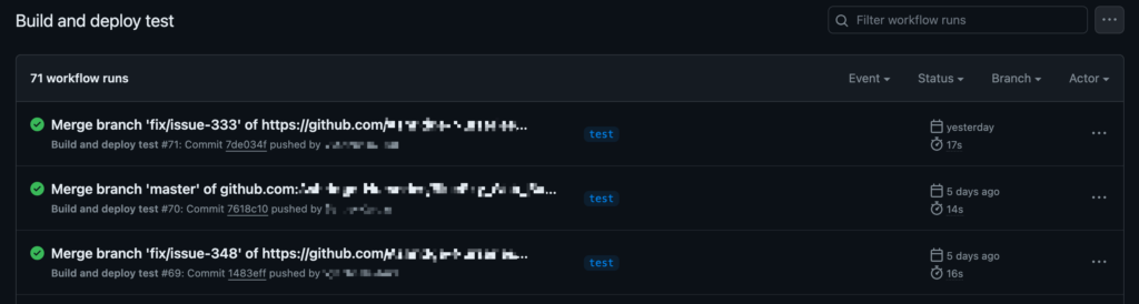 Here’s a workflow to build and deploy the test branch to the test environment: